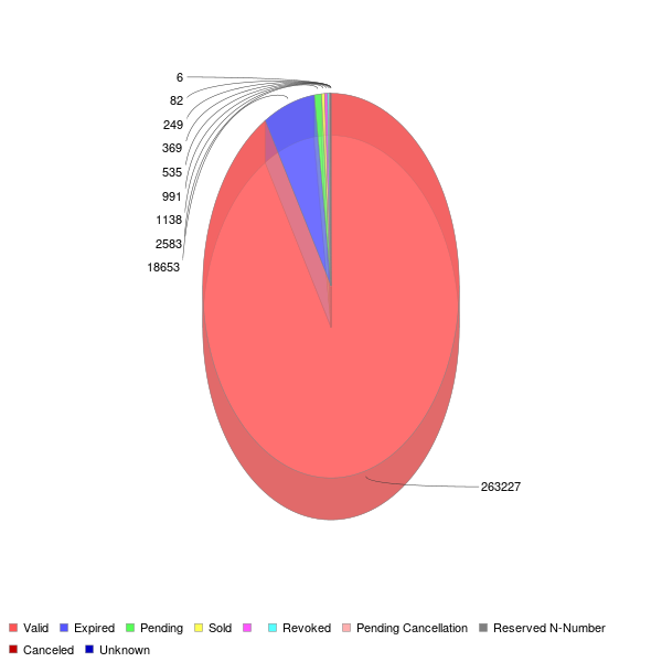 WhosePlane.com compiled data report on aircraft registration status as reported by the FAA.